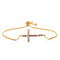 Delicate, adjustable cross bracelet with colorful micro pave, CZ rhinestones. Gold plated.