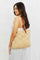 A boho, medium sized tote with a checkered weaved design and brown faux leather straps. This bag gives the perfect beachy feel to any summer outfit. This bag features a zipper closure and a slip pocket in the interior.