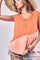 This Henley top features a stylish color block design with contrast stitching details that add a modern and trendy touch. The buttoned Henley neckline offers a classic and versatile look. Perfect for adding a pop of color and visual interest to your outfit, this top can be paired with jeans or leggings for a casual yet chic ensemble.