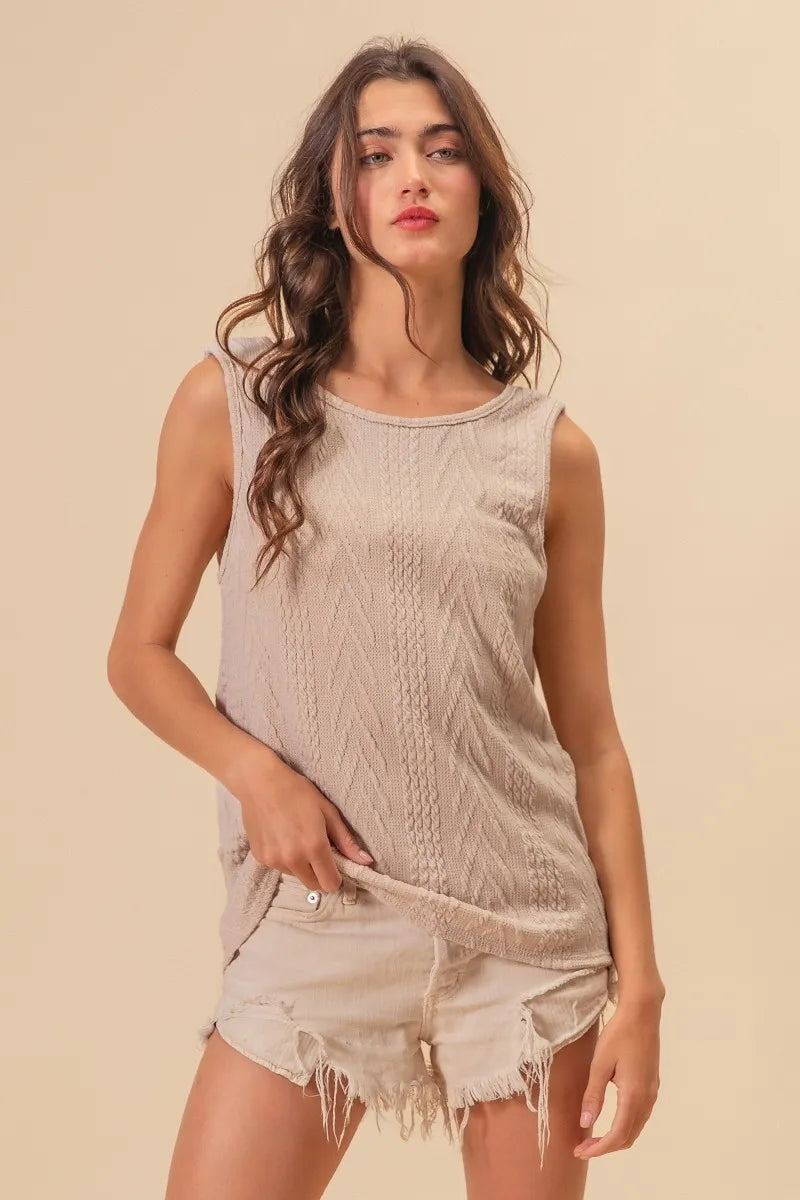 BiBi Textured Sweather Knit Twist Back Sleeveless Top