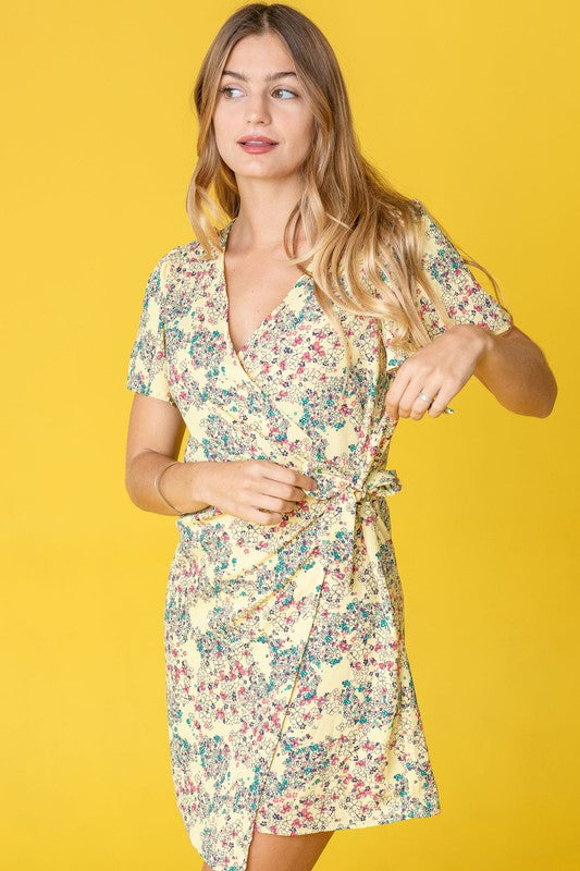 Our Ditsy Floral Wrap Dress is a beautiful option for any woman who values comfort and flair. Add a pop of color and charm to your collection. With its vivid, multicolored floral design set against a breezy fabric, this dress perfectly captures the spirit of spring and summer.