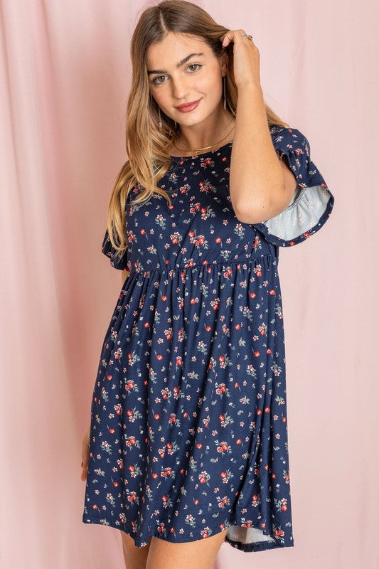 - Charming Floral Pattern: The dress features a lovely ditsy floral print in shades of red and blue on a navy background, ideal for any season.
