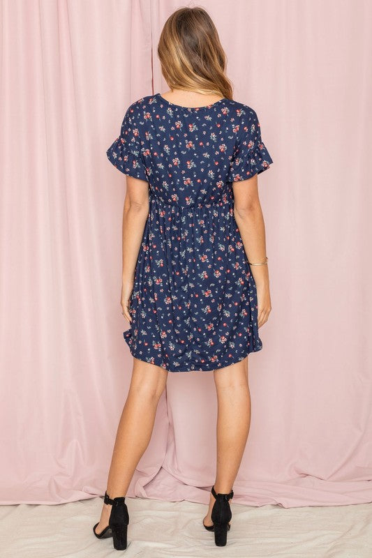 This Ditsy Floral Ruffle Chest Pocket Dress is a must-have for those looking to add a piece to their collection that is both versatile and stylish, ensuring you look great no matter where you go.