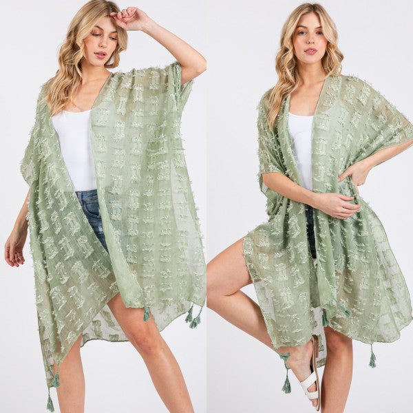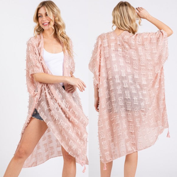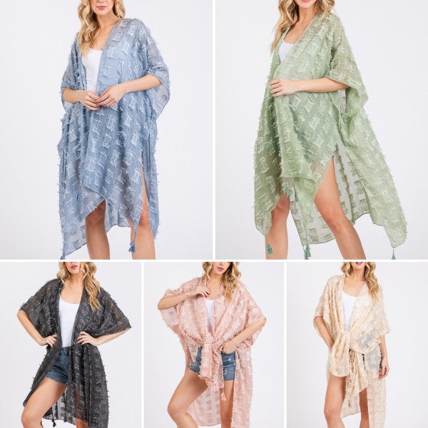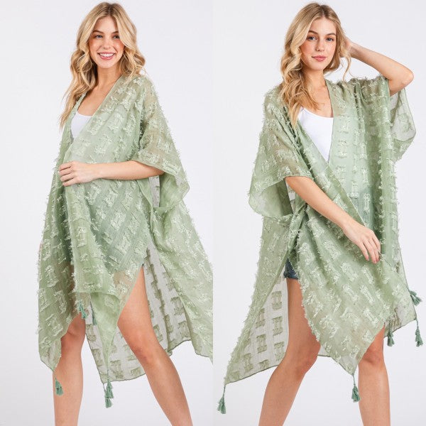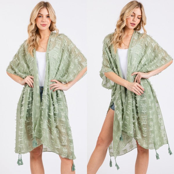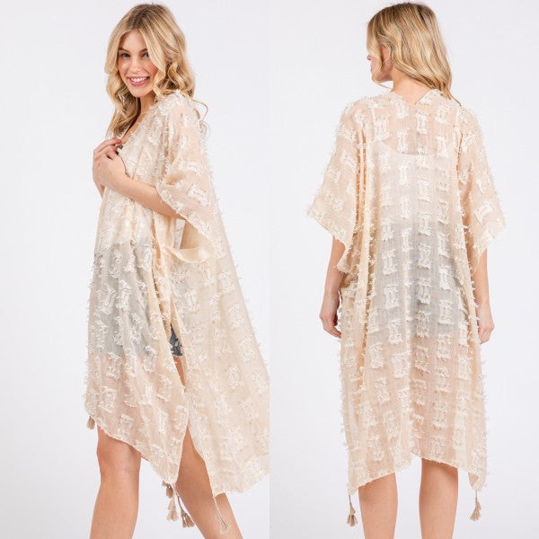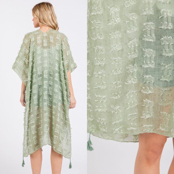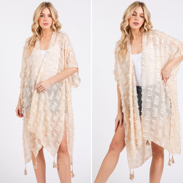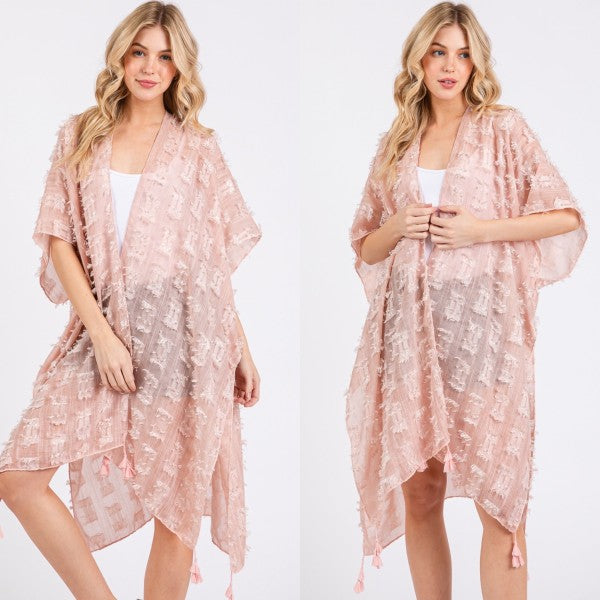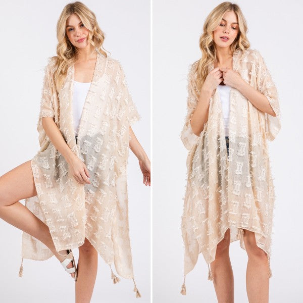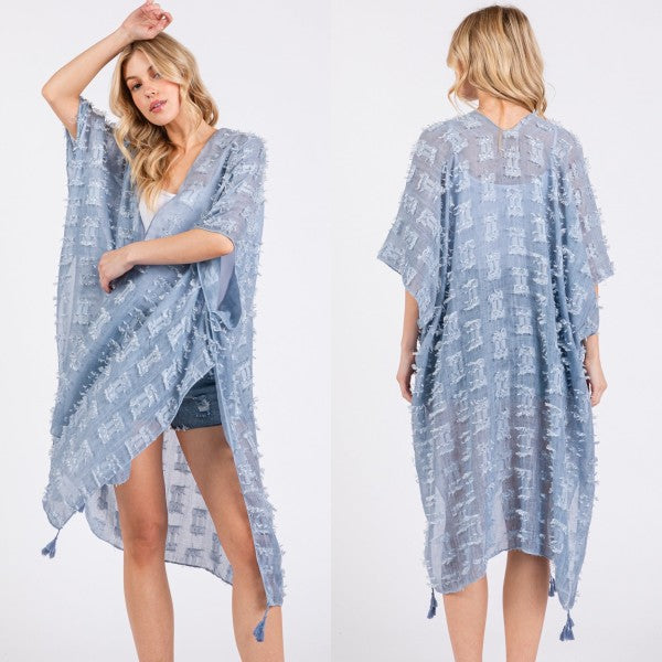 Distressed Pattern with Tassel Open Kimono Shawl