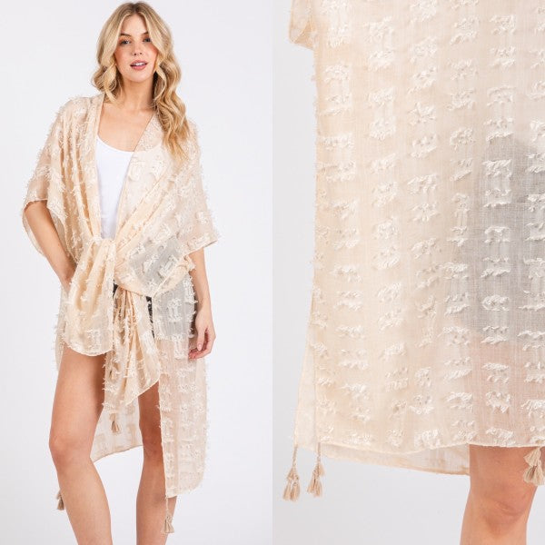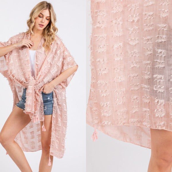 Distressed Pattern Tassel Kimono