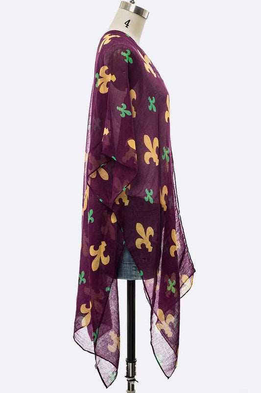 Fleur De Lis Mardi Gras Print Kimono Cardigan