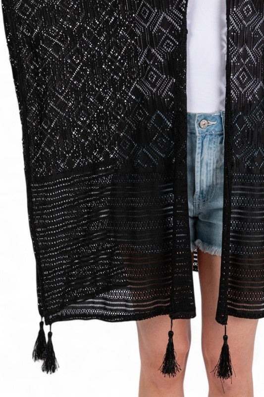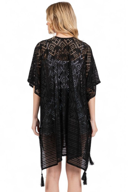 Geometric Cutout Lace Tassel Kimono Cover Up