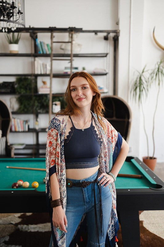 Paisley Floral Patchwork Lightweight Tassel Kimono w/ Armholes