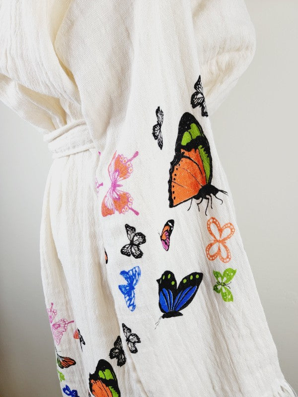 Soft and Cozy Muslin Kimono Robe, Organic Cotton M