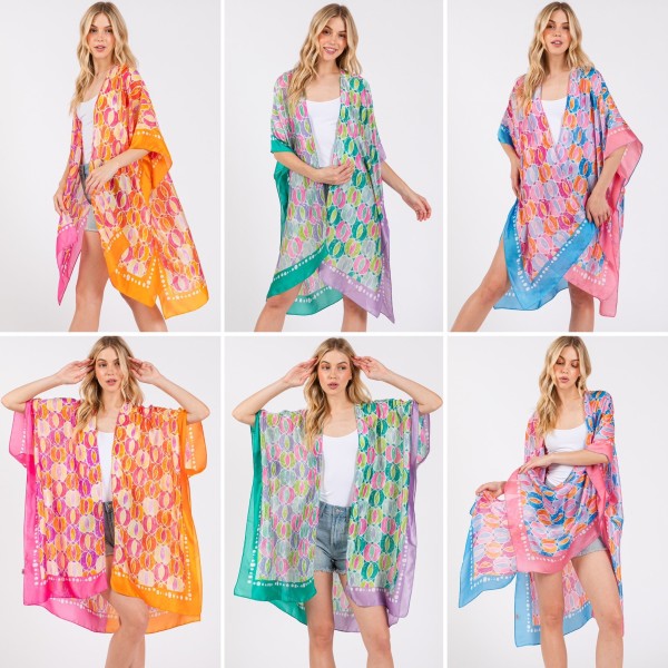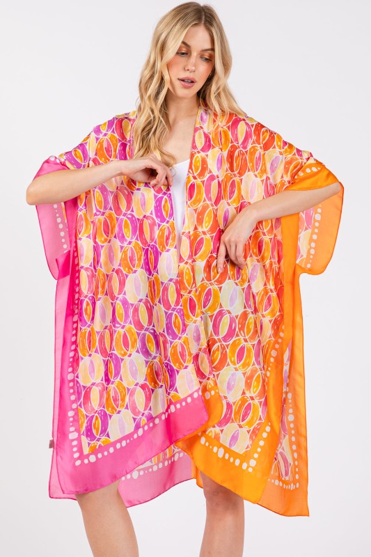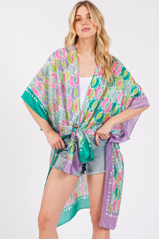 Two Tones Trim Abstract Print Silky Feel Kimono