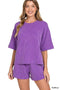 Zenana Halo Snow Washed Short Sleeve Tee and Shorts Set
