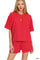 Zenana Raised Rib Short Sleeve Tee and Drawstring Shorts Set