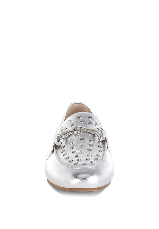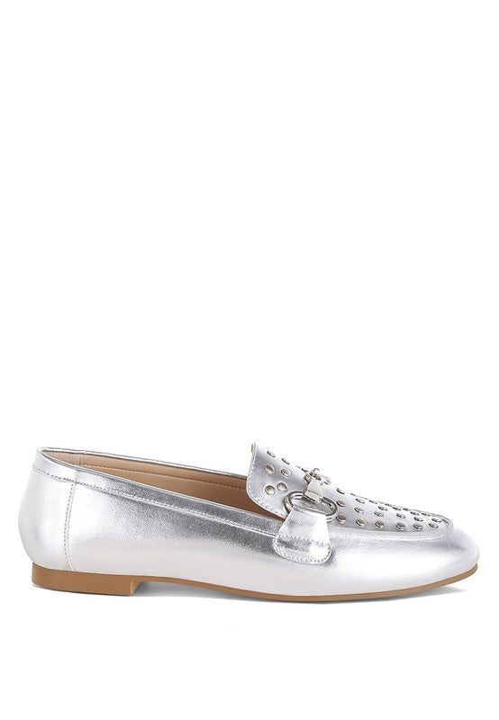 Estafa Horsebit & Studs Metallic Pleather Loafers