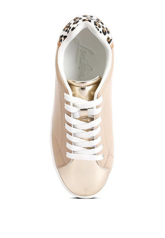 The faux leather sneakers are a fun treat with the metallic accent on the front and printed back panel which instantly lights up the aesthetics of the chunky shoes! The shoes are perfect for that party night out where you want to look fashionable yet be comfortable.