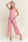 ADORA Ribbed V-Neck Wide Leg Jumpsuit with Pockets