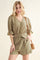 Make a statement in this Flounce Sleeves Romper with Belt. The flounce sleeves add a touch of femininity and flair to this one-piece outfit. Cinched at the waist with a belt, this romper accentuates your silhouette for a flattering look. Perfect for a day out or a special occasion, the romper offers both style and comfort. Step out in confidence and style with this chic and trendy ensemble.
