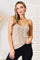 Stay cool and stylish with this openwork scoop neck knit tank top. The openwork design adds a touch of elegance and a breathable feel to this tank top, making it perfect for summer days. The scoop neck adds a flattering and feminine touch, creating a versatile and chic look. Whether paired with shorts or layered under a cardigan, this tank top is a trendy addition to your summer wardrobe.