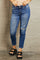These jeans feature a flattering mid-rise waistline that accentuates your curves while providing a comfortable fit. The dark wash adds a touch of sophistication, making them versatile enough to dress up or down for any occasion. The distressed detailing gives a trendy edge to your look, making these jeans a must-have in your wardrobe.