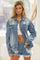 BiBi Pearl Detail Distressed Button Up Denim Jacket