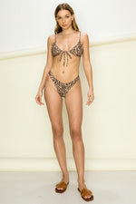 Embrace your wild side with our Coastal Vibes Leopard Print Bikini Set. This bikini set is perfect for those who love a touch of adventure and style at the beach or by the pool. The structured bikini top provides both support and style, featuring padding for comfort and an adjustable tie front detailing for a customized fit. The matching bikini bottoms are versatile, allowing you to pull them up on the sides for that trendy, high-cut look.