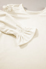 Corduroy Round Neck Ruffled Flounce Sleeve Blouse