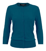 - 22"-23" Length, 3/4 Sleeves, Button Down, Basic, Daily, Casual, Crewneck Knit Cardigan Sweater