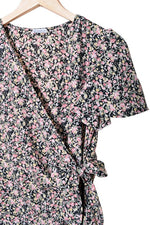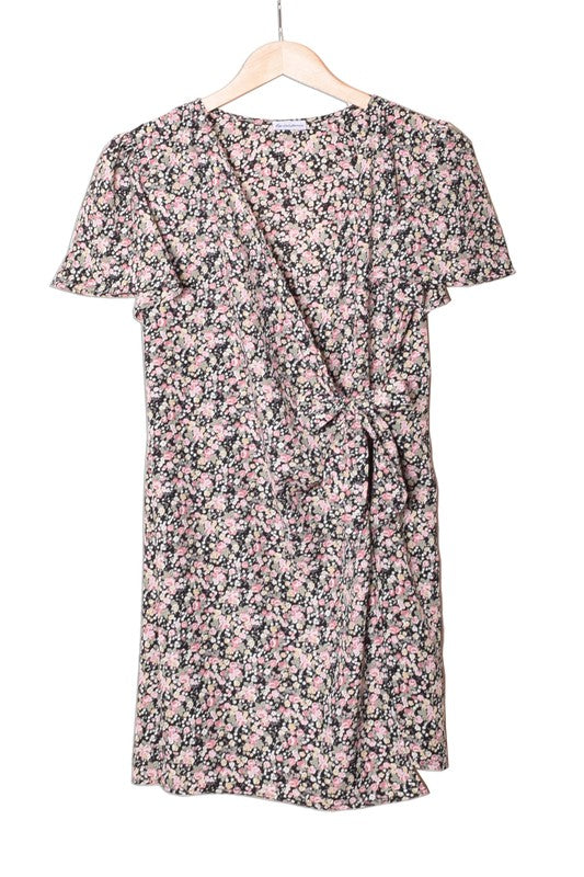 Our Ditsy Floral Wrap Dress is a beautiful option for any woman who values comfort and flair. Add a pop of color and charm to your collection. With its vivid, multicolored floral design set against a breezy fabric, this dress perfectly captures the spirit of spring and summer.