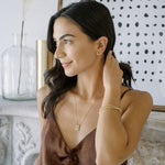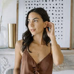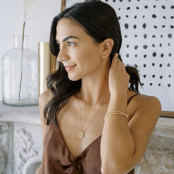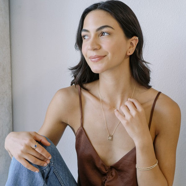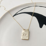 A radiating, sparkling evil eye pendant upon a thin chain necklace. The length is layering friendly with an adjustable length between 18" - 21". Measures 16mm x 12mm.