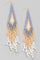 Seed Beaded Fringe Drop Earrings are stylish and trendy earrings featuring seed beads arranged in a fringe design that dangles and moves with the wearer. These earrings add a fun and playful element to any outfit, perfect for adding a pop of color and texture to your look. The fringe detail creates movement and dimension, making these earrings a stylish accessory for various occasions.