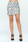Made in USA Leopard Print Satin Mini Skirt with Slit. Available in other Colors. Fabric content: 97% Polyester, 3% Spandex.