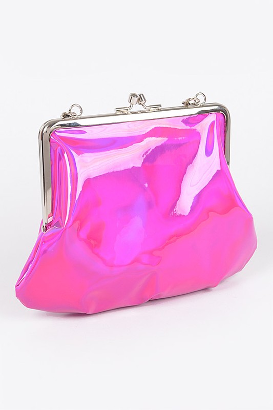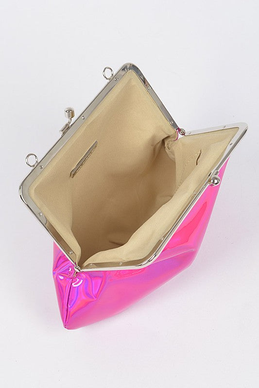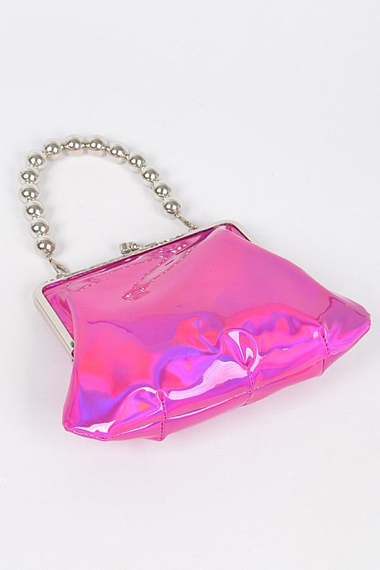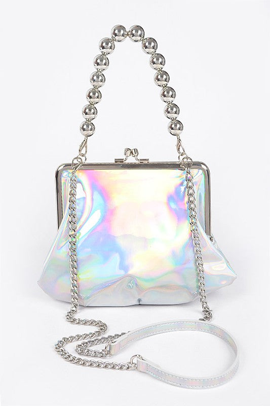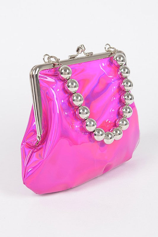 Metallic Mirrored Top Handle Swing Clutch Bag