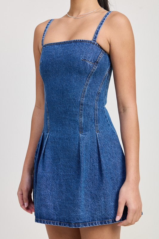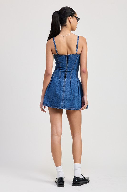 This dress is your new favorite for carefree style because of its striking denim finish and smooth side zipper. You can dress it up with heels for an evening out or pair it with your favorite sneakers for an adventure throughout the day. With this essential addition to your wardrobe, you can dive into style.
