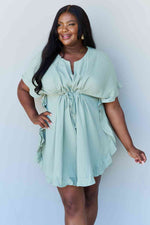 Ninexis Out Of Time Full Size Ruffle Hem Dress with Drawstring Waistband in Light Sage