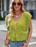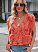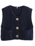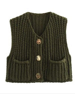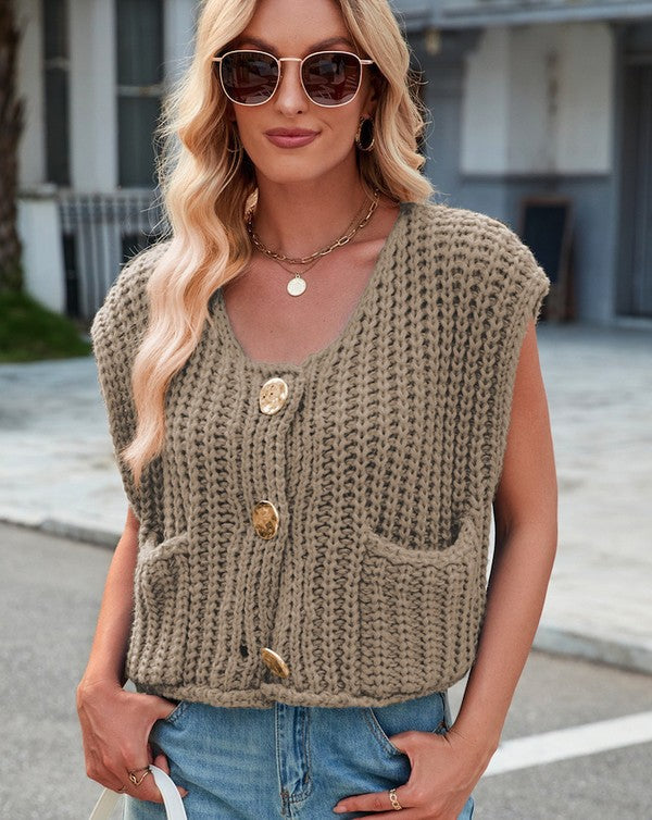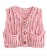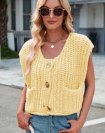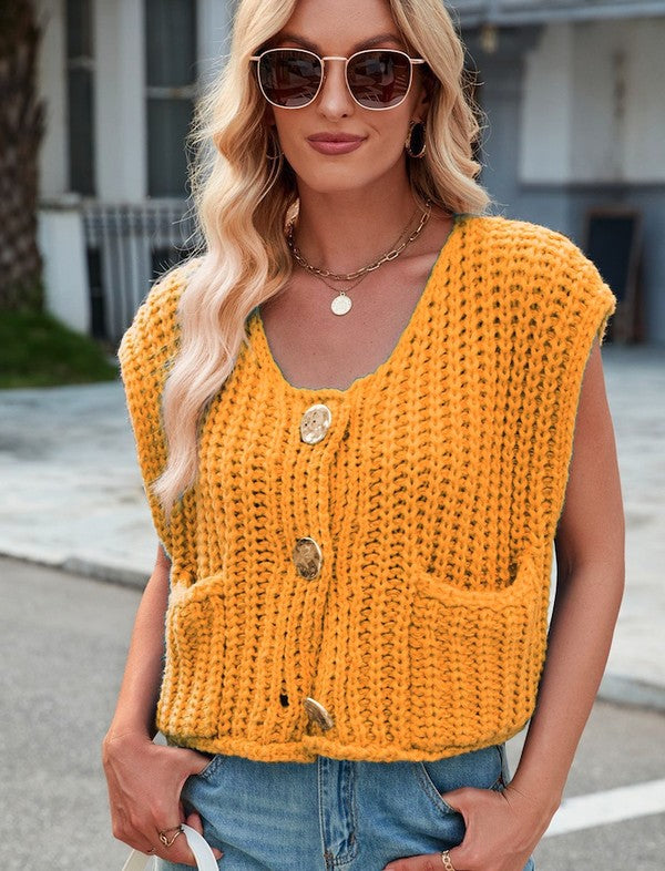 - Style: Sleeveless cardigan vest, ideal for transitional weather or as a statement piece in warmer months.