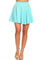 Solid, pull on, a line mini skirt with a thick waistband and pleats.