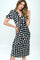 Stretch Satin Polka Dot Print Midi Dress