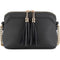 Solid tone faux leather body, two tassel front, and gold tone hardware