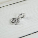 A stylish charm of sparkling zirconia outlined on shiny hypoallergenic stainless steel that will nicely complement any bracelet or necklace.