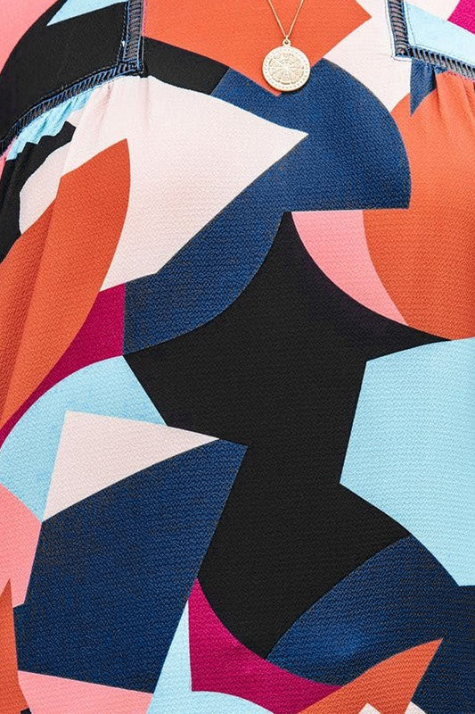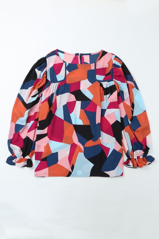The glowing multicolor abstract pattern makes this blouse a work of art